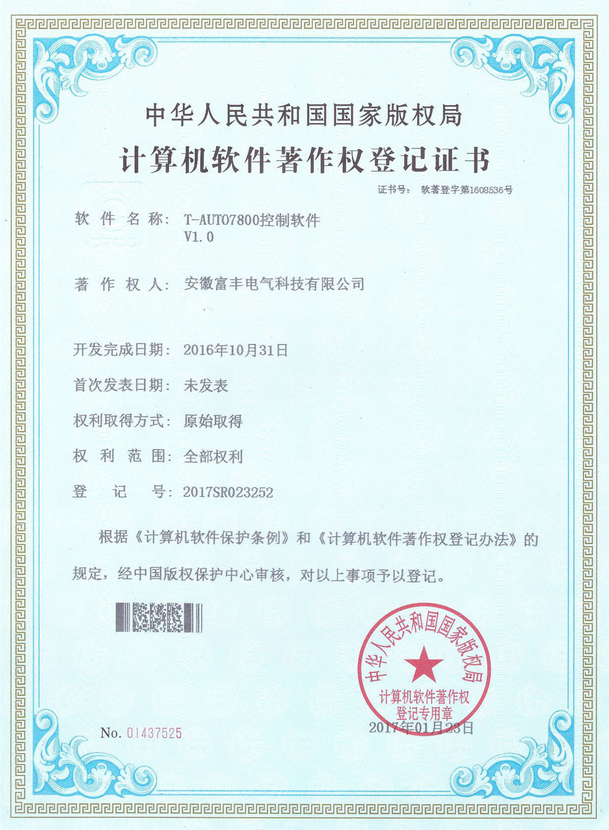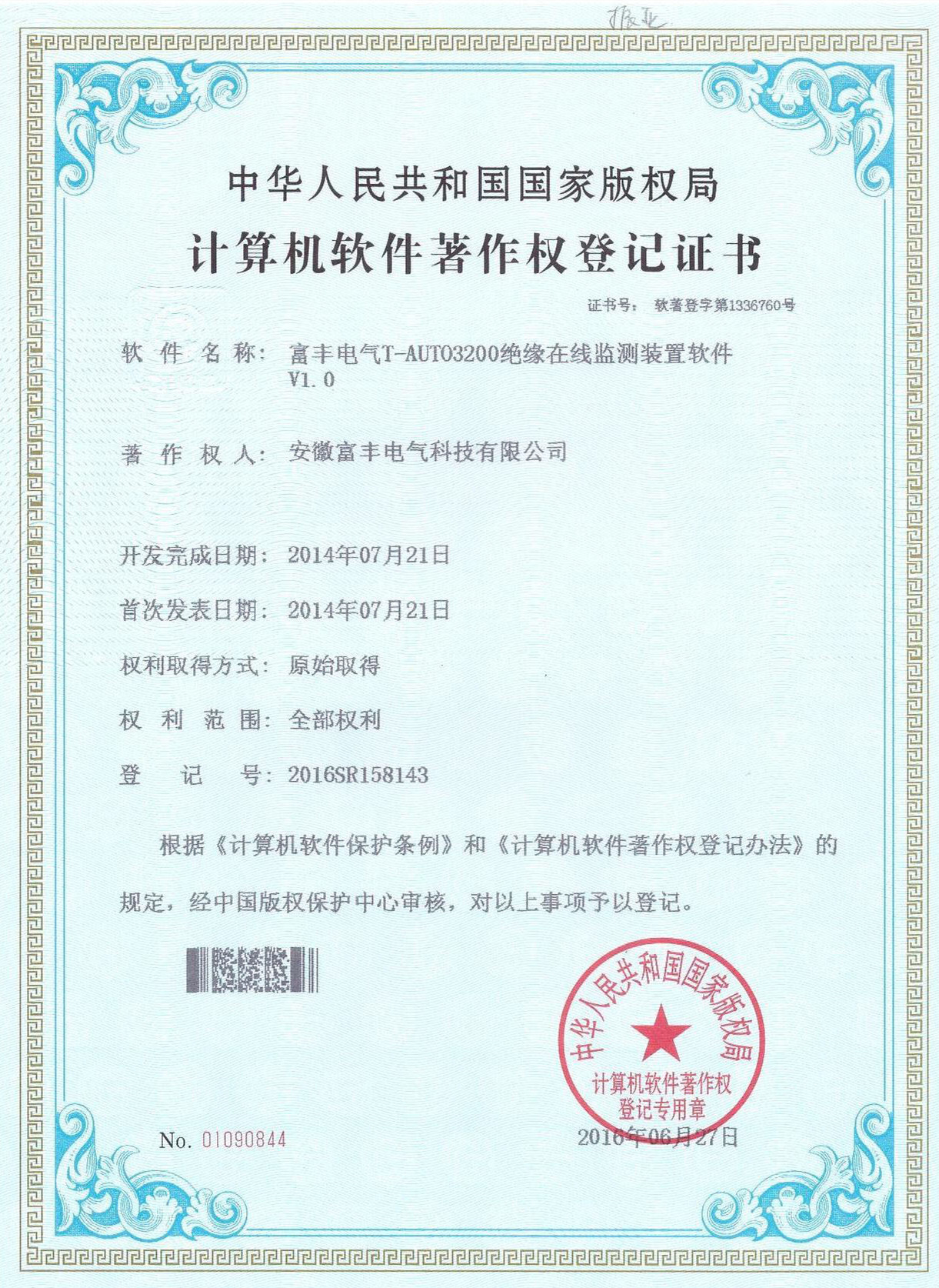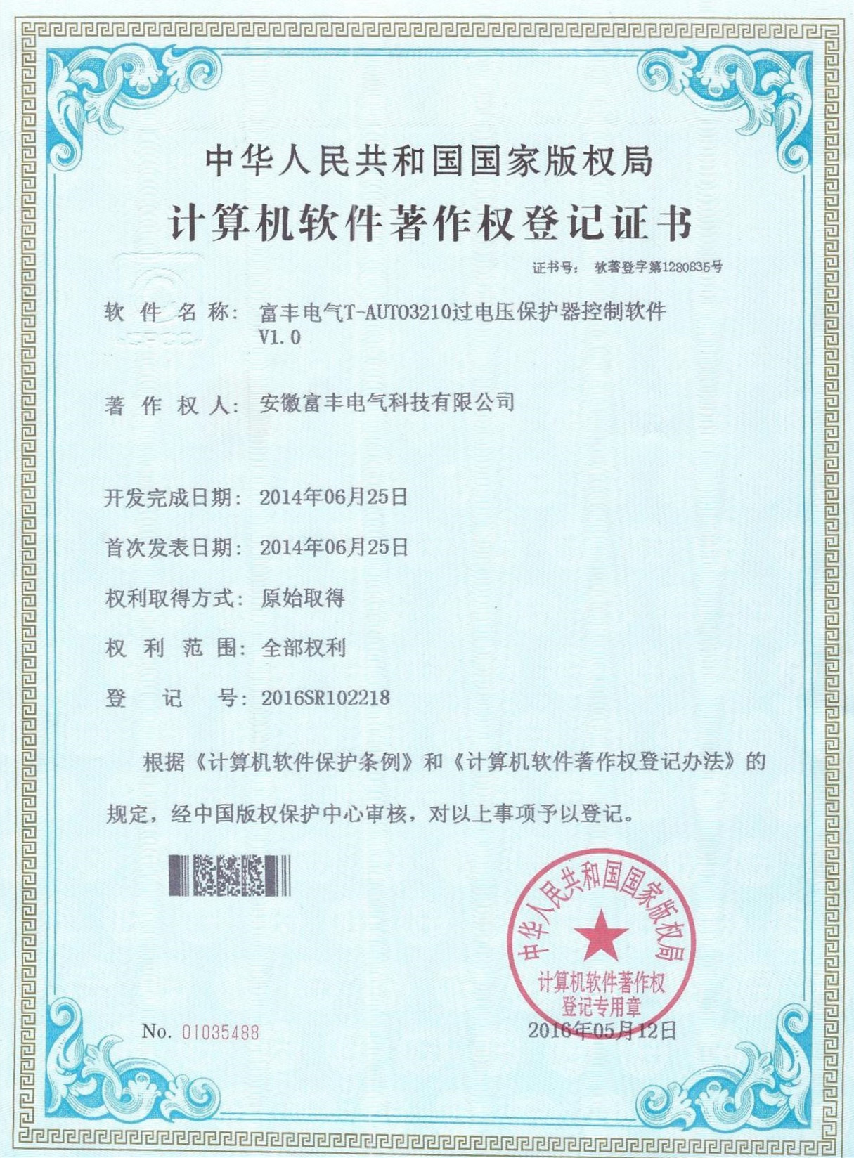 著作权登记证书